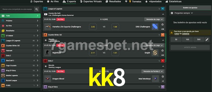 O kk8 oferece uma grande seleção de opções de apostas em e-sports com probabilidades competitivas